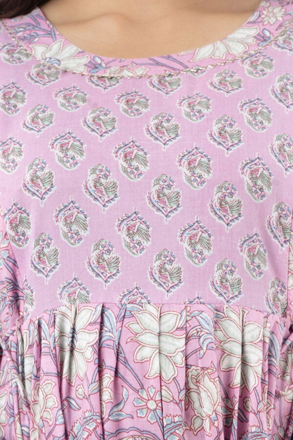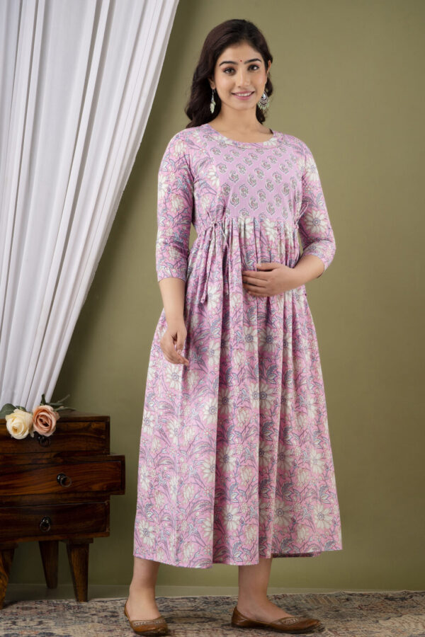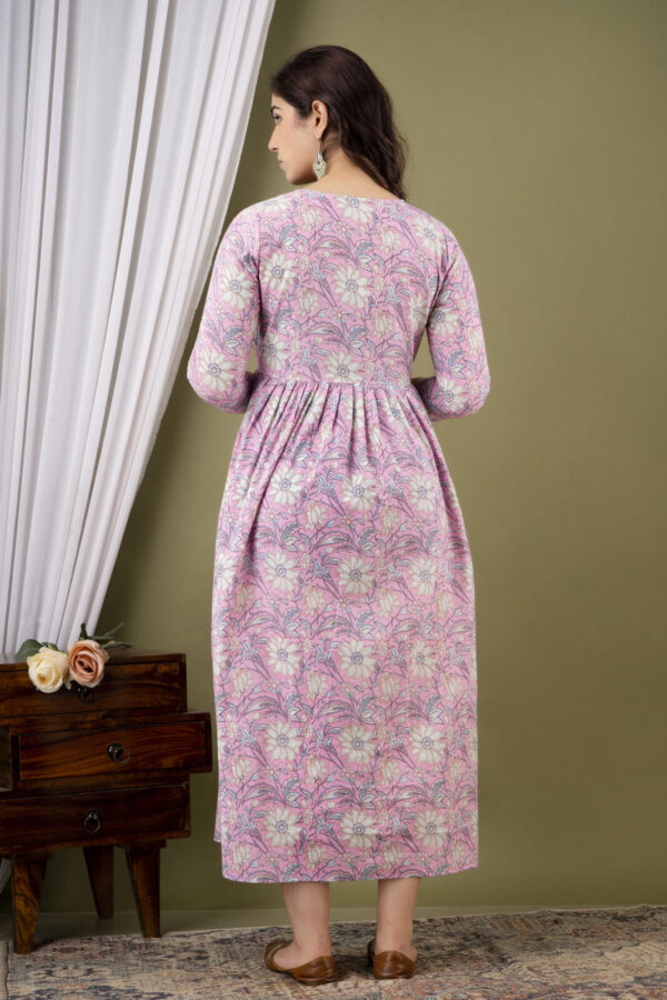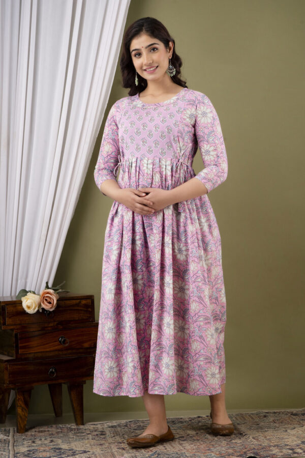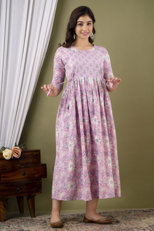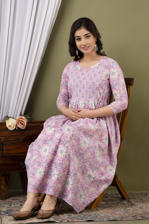 Baby Pink Floral Cotton Anarkali Maternity & Feeding Dress