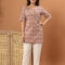 Beige & Grey Ajrakh-Print Cotton Straight Tunic Top