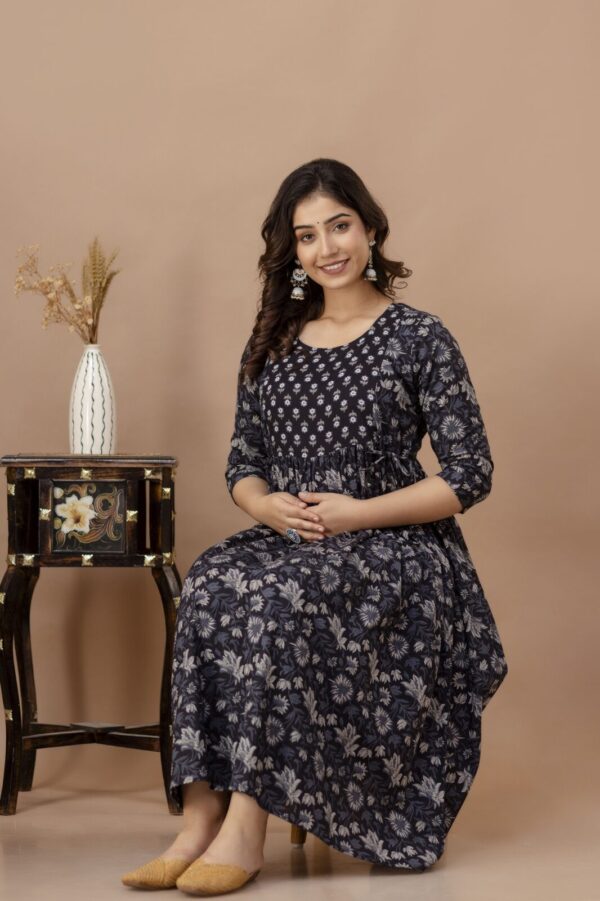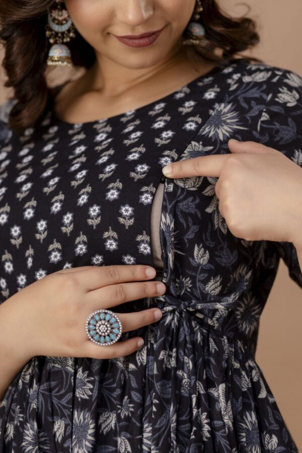 Black Floral & Butti Print Cotton Anarkali Maternity & Feeding Dress