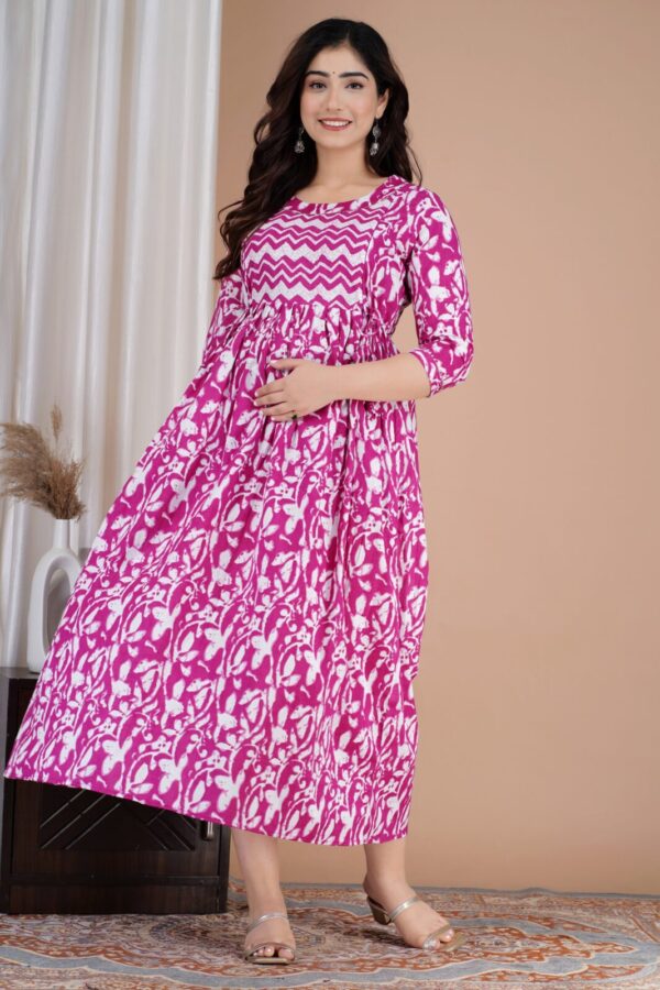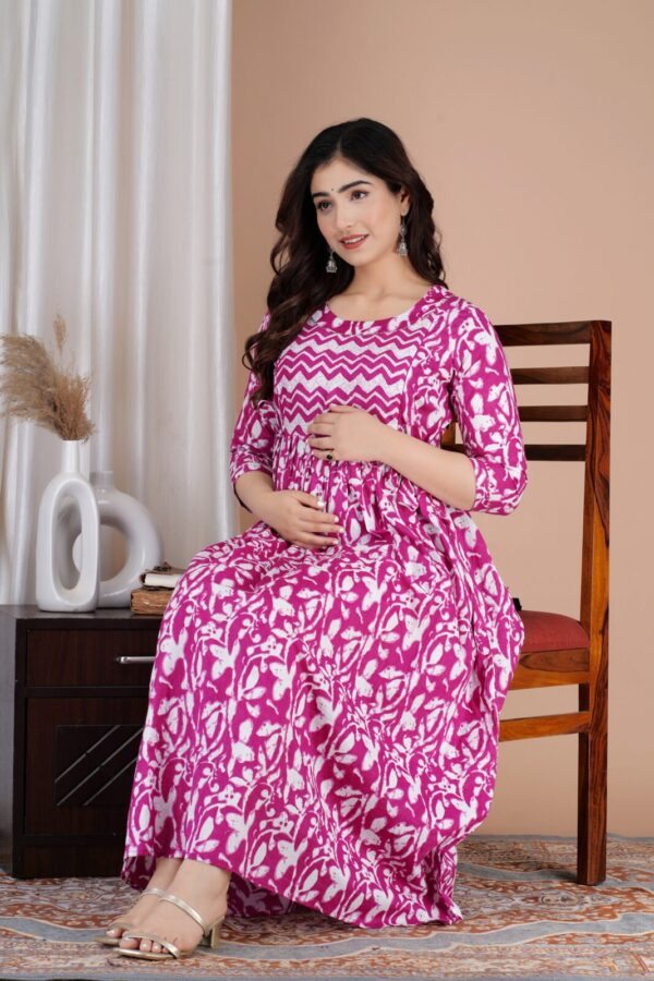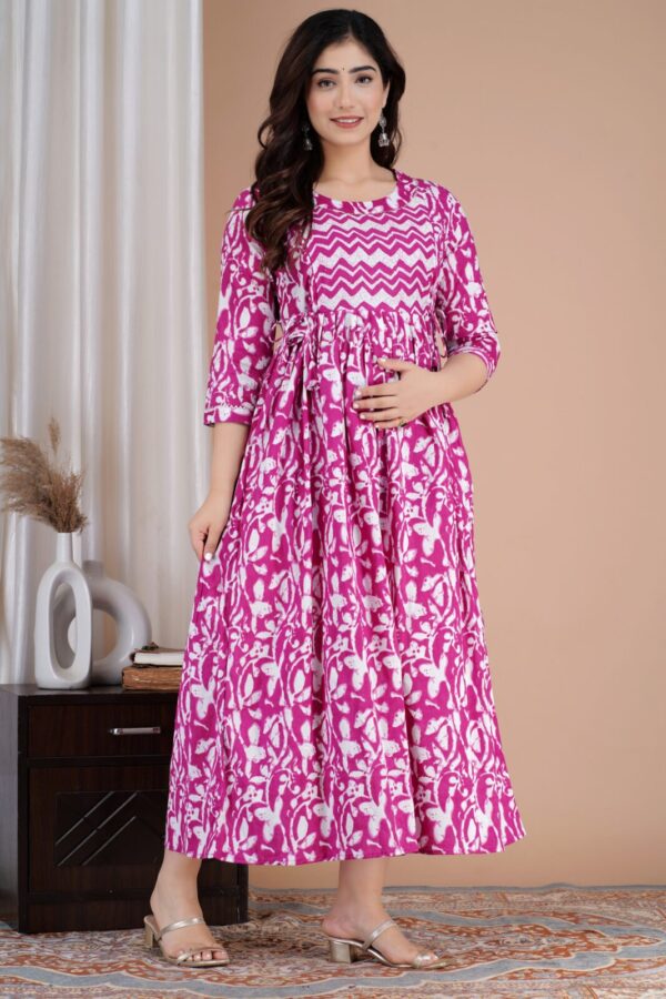 Be the first to review “Bright Purple Leafy Print Cotton Anarkali Maternity & Feeding Dress”