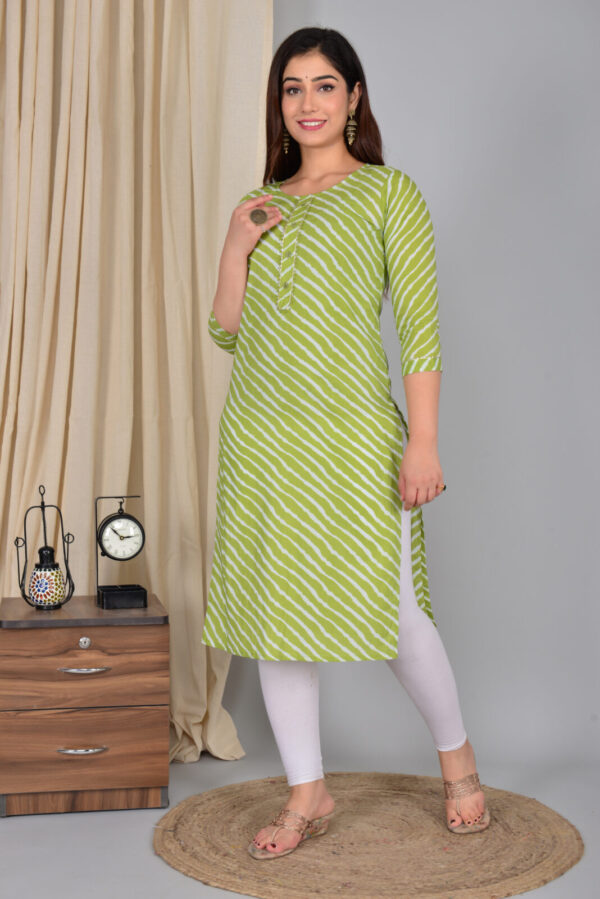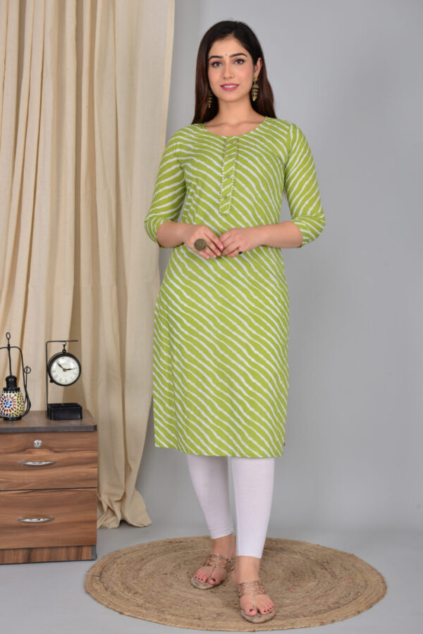 Be the first to review “Green Leheriya Print Cotton Straight Kurti”