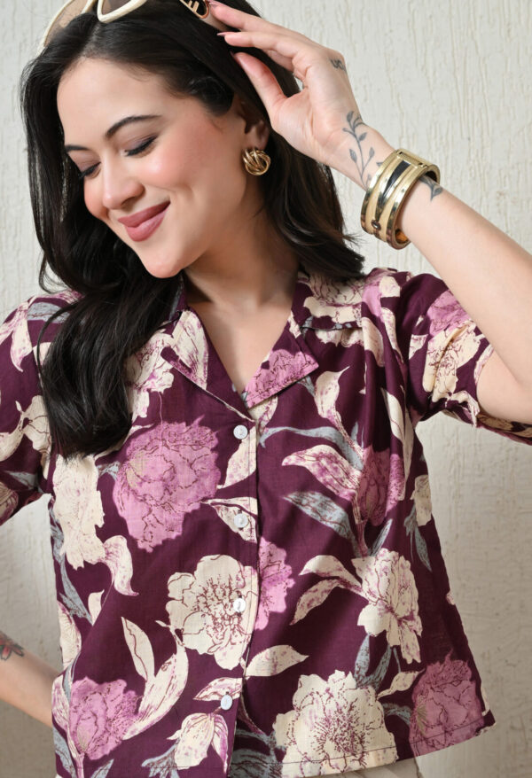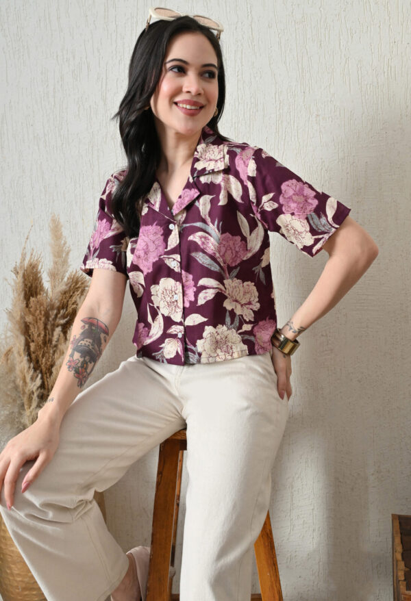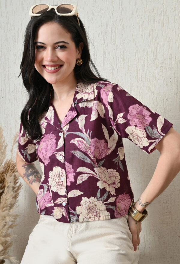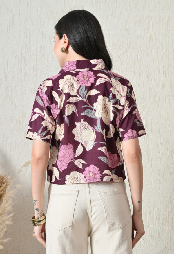 Make a bold style statement with this elegant wine floral printed cotton short kurti from Murli Kurti.