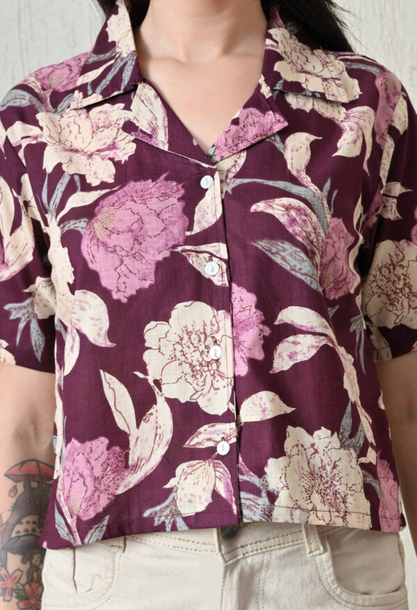 - Rich wine color with bold floral print
