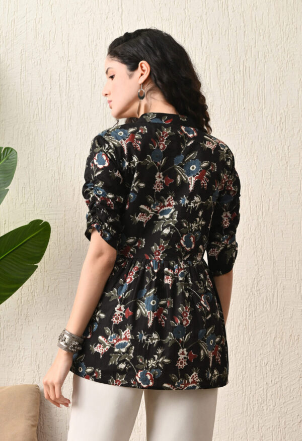 Murlikurti Black Multicolor Floral Printed Cotton Short Kurti