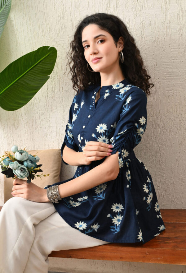 Murlikurti Navy Blue Floral Peplum Kurti
