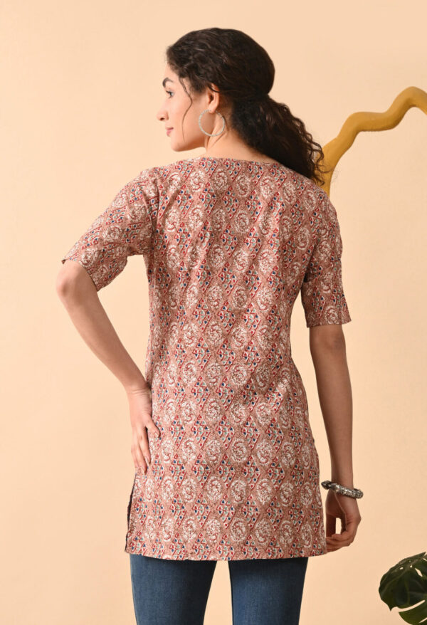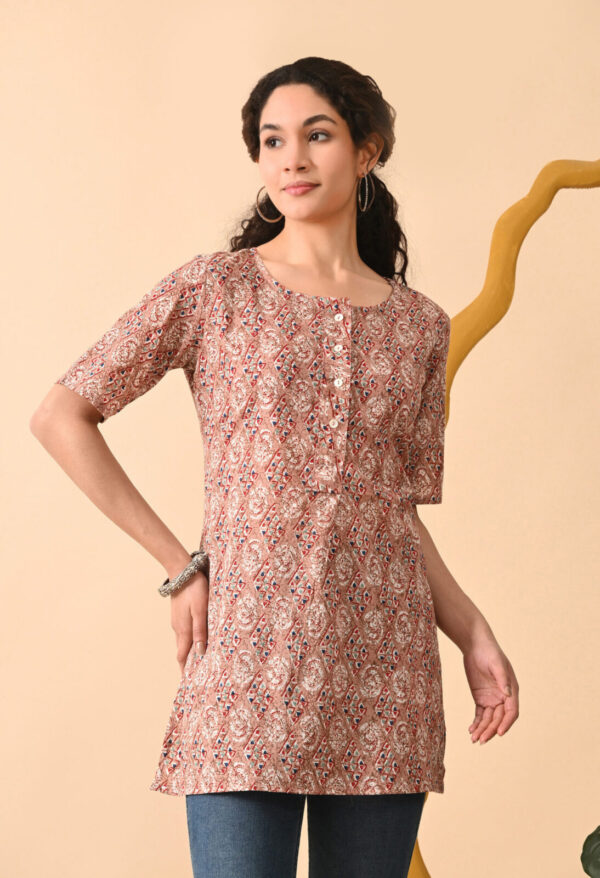 Murlikurti Peach Brown Ethnic Printed Straight Kurti