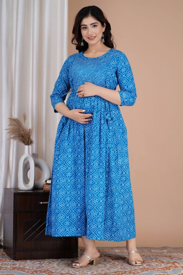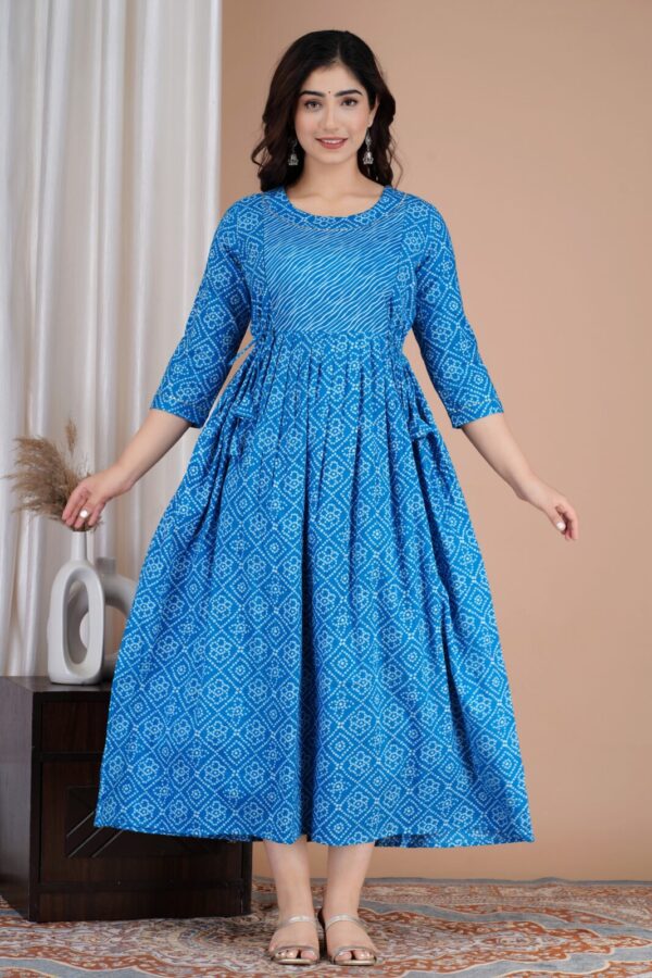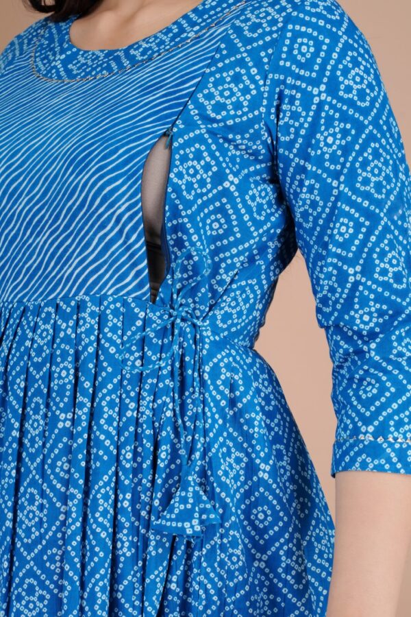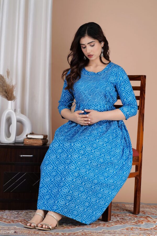 Be the first to review “Royal Blue Bandhani & Leheriya Cotton Anarkali Maternity Dress”