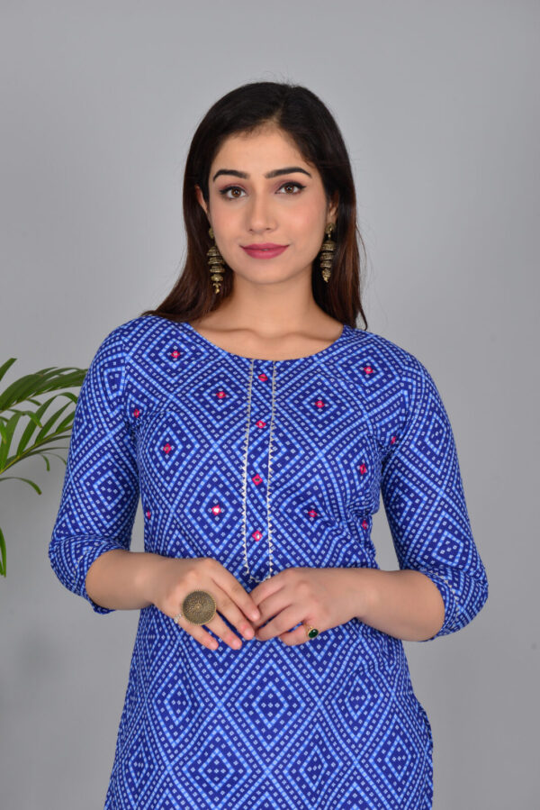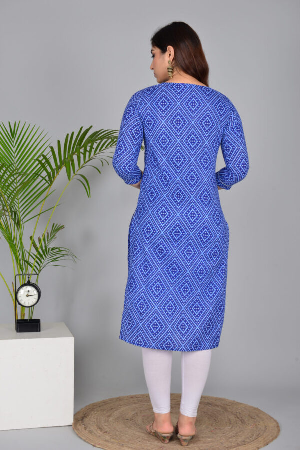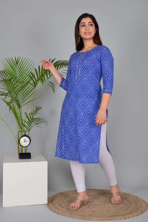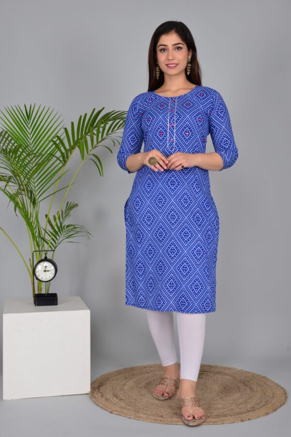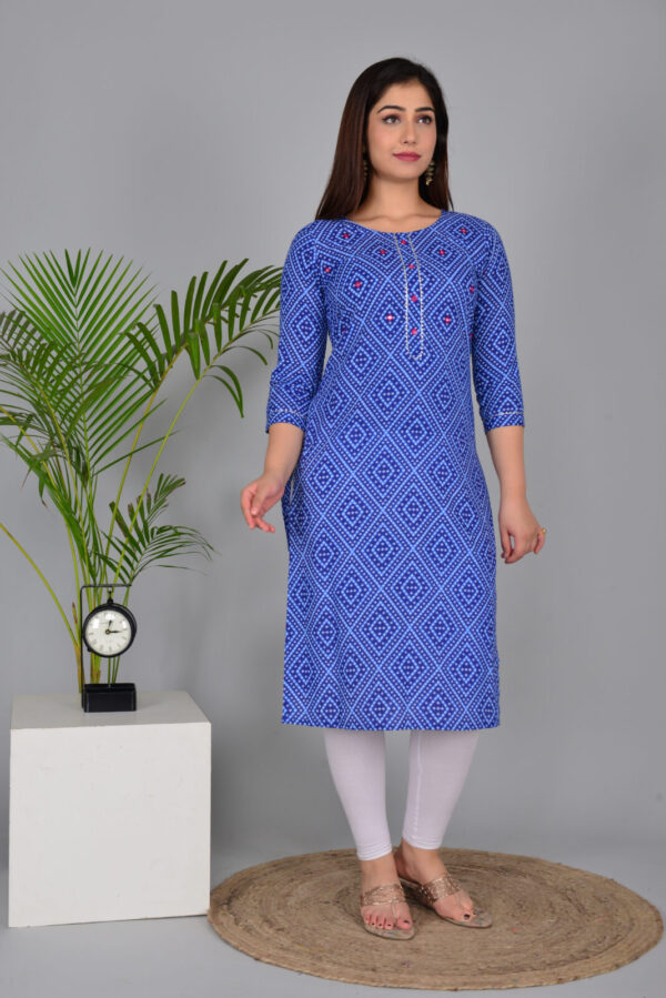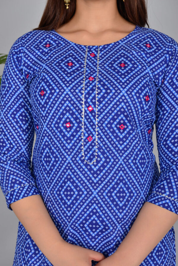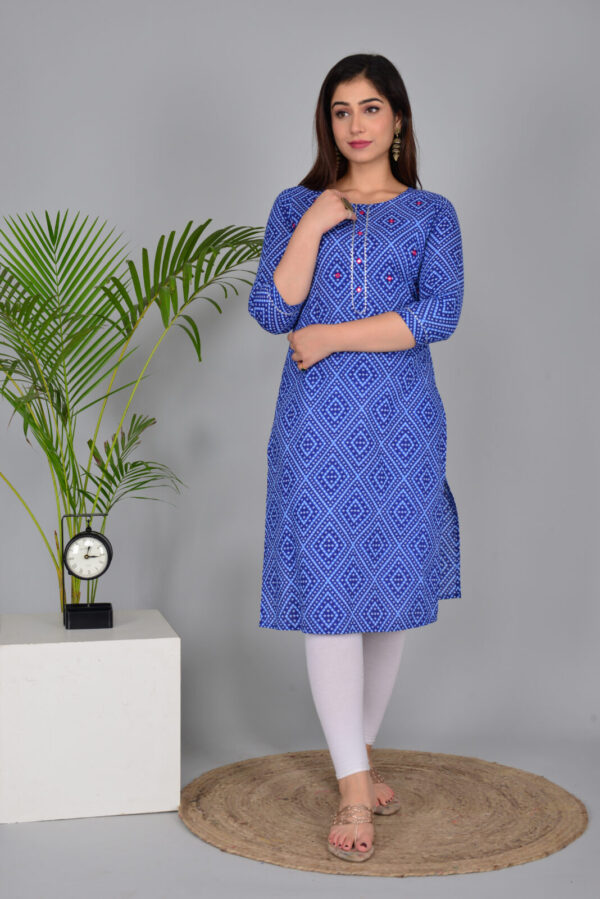 Royal Blue Bandhani Print Cotton Straight Kurti