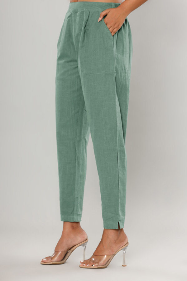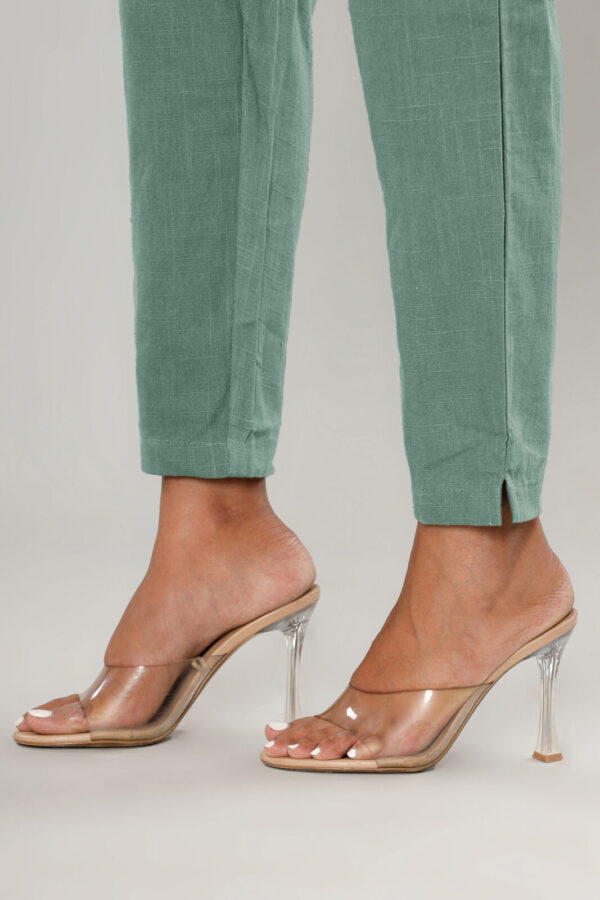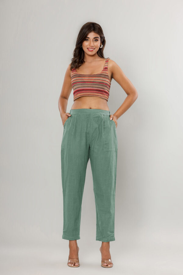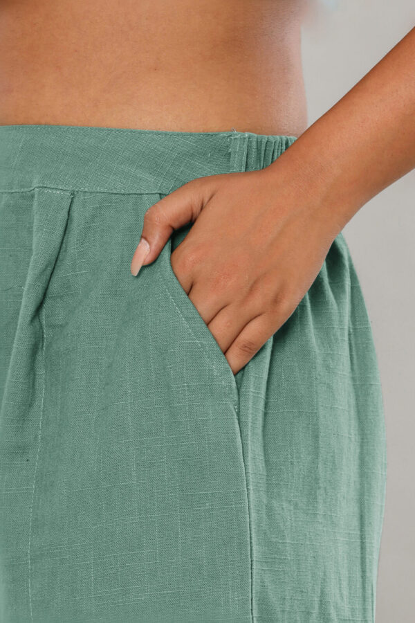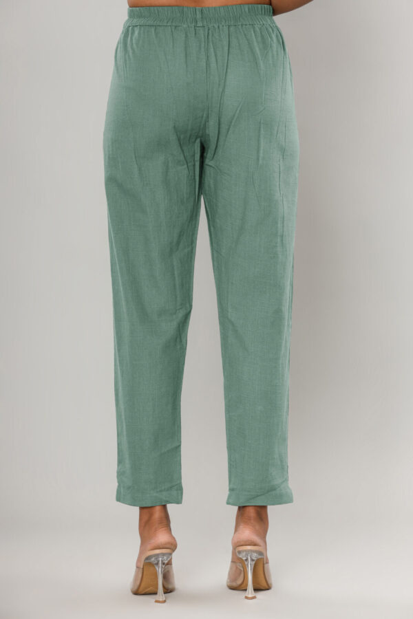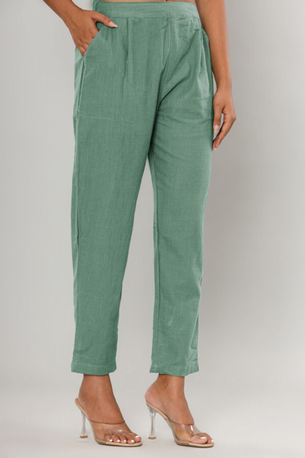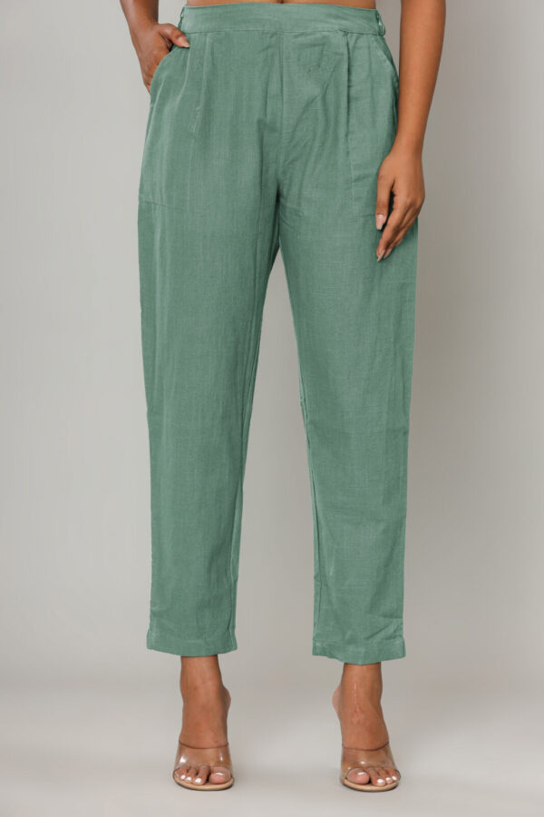 Elevate your everyday wardrobe with our Sage Green High-Rise Trousers. Crafted from a premium, breathable linen-blend fabric, these trousers feature a subtle textured finish that perfectly balances comfort with a refined aesthetic.
