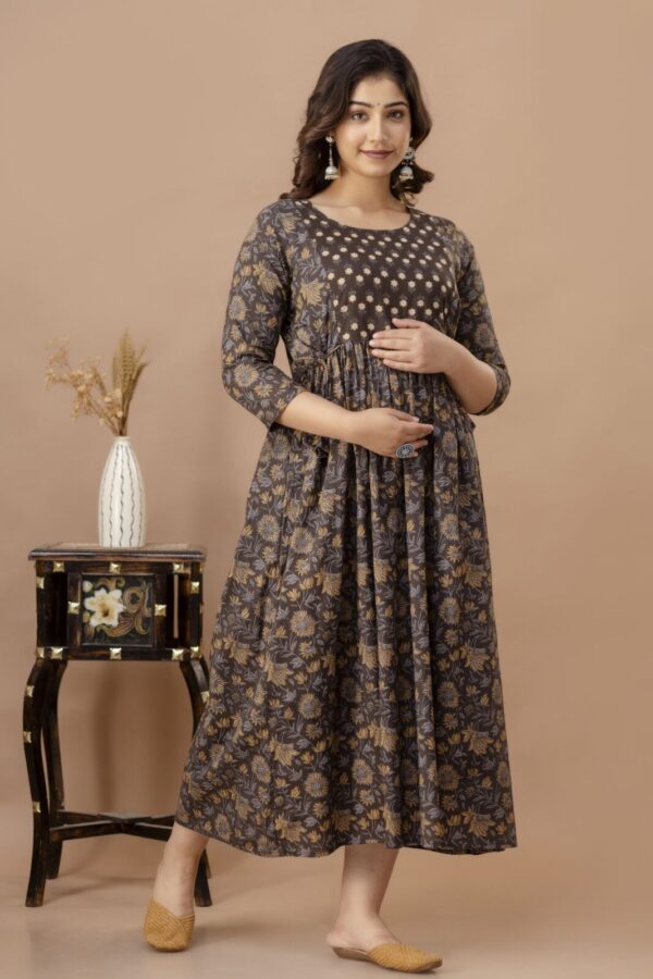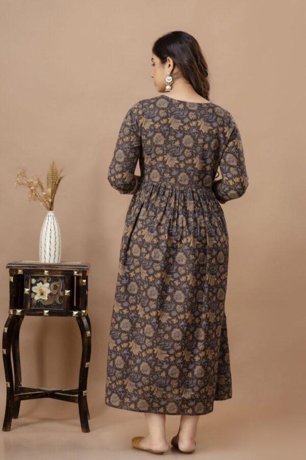 Be the first to review “Women’s Charcoal Grey Floral Cotton Anarkali Dress”