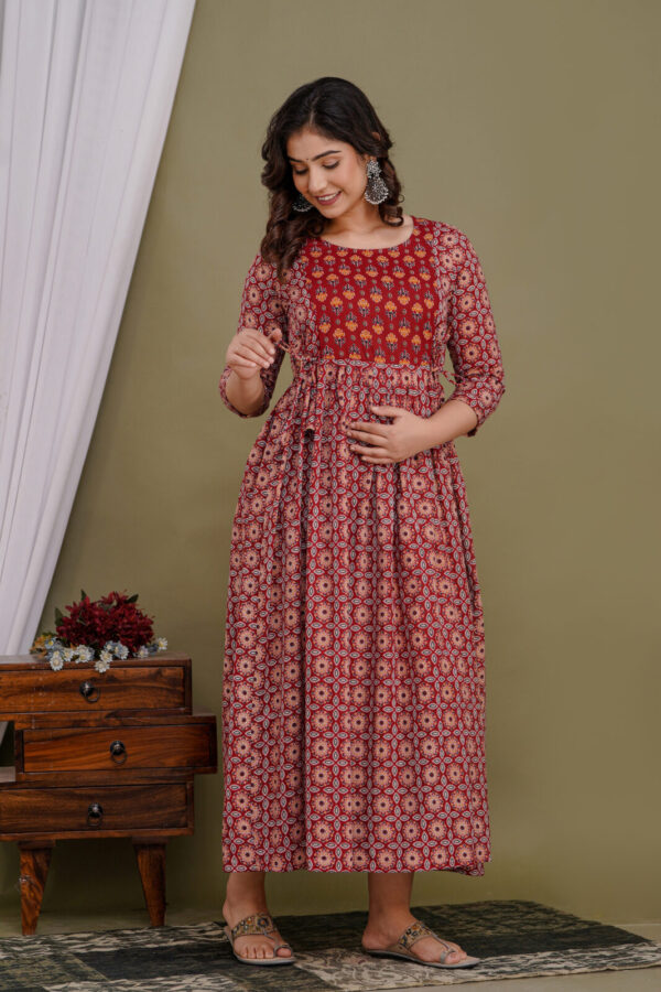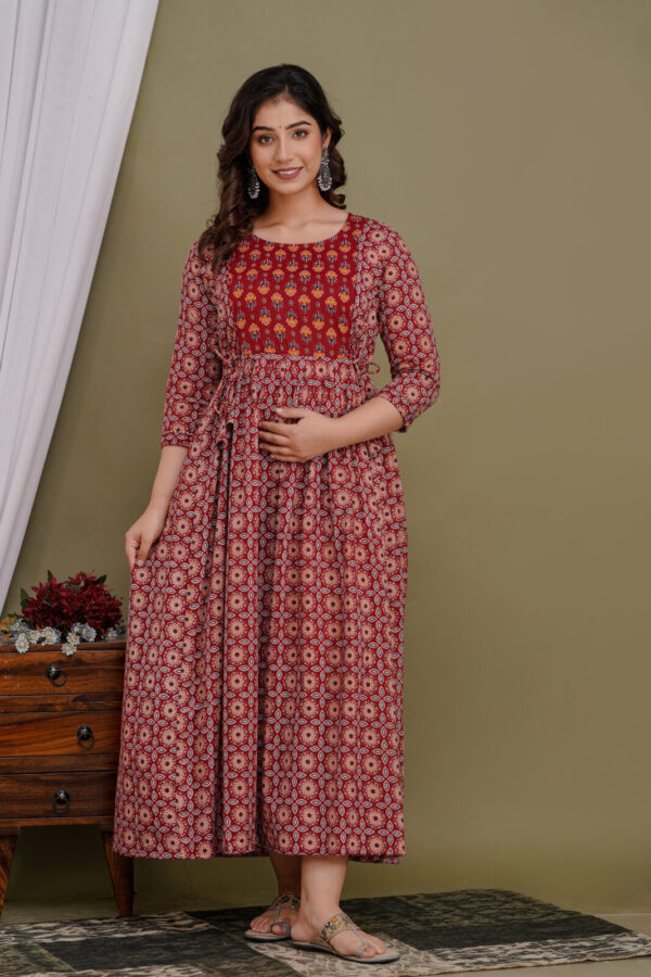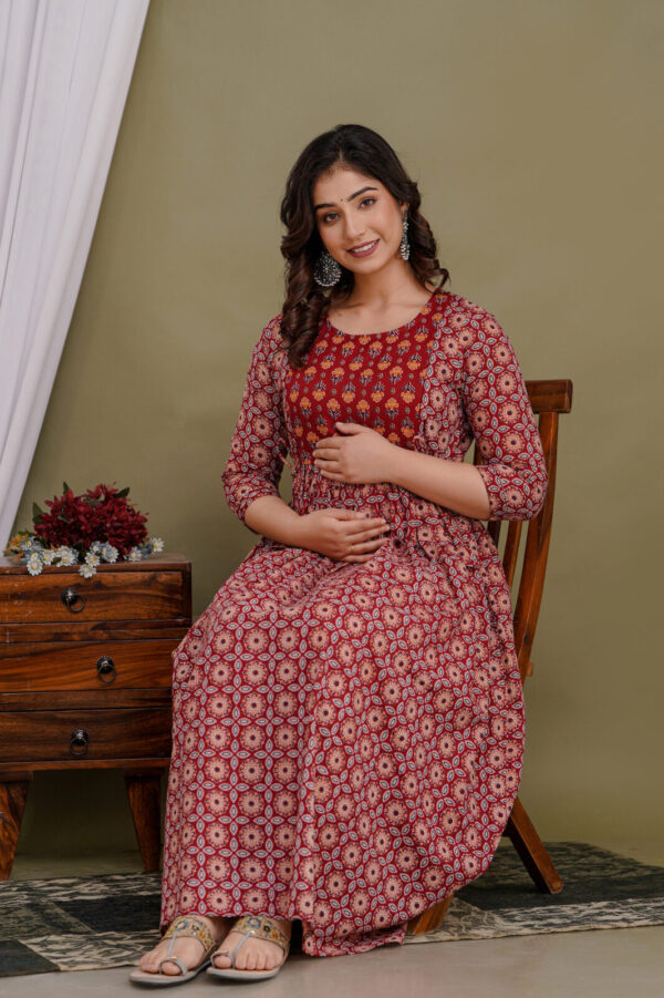 Classic 3/4 Sleeves: Features tailored three-quarter sleeves that perfectly complement the dress’s ethnic-fusion aesthetic.