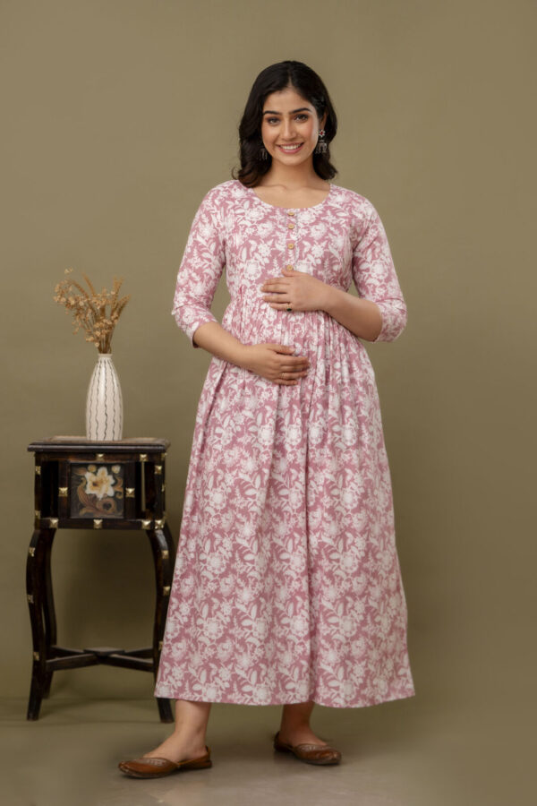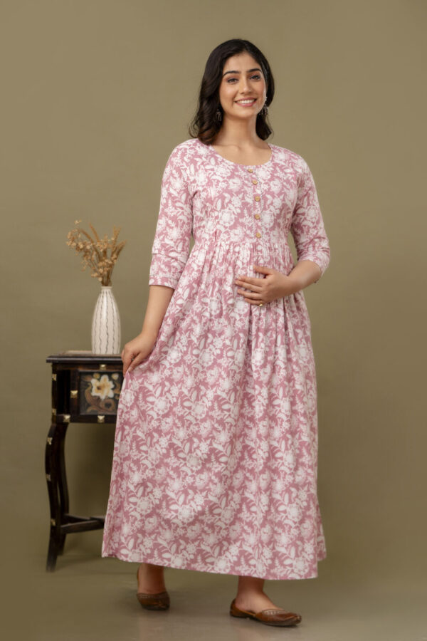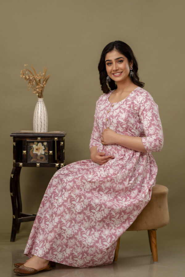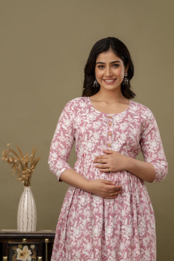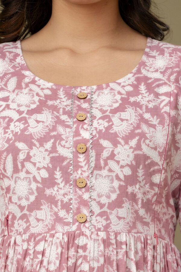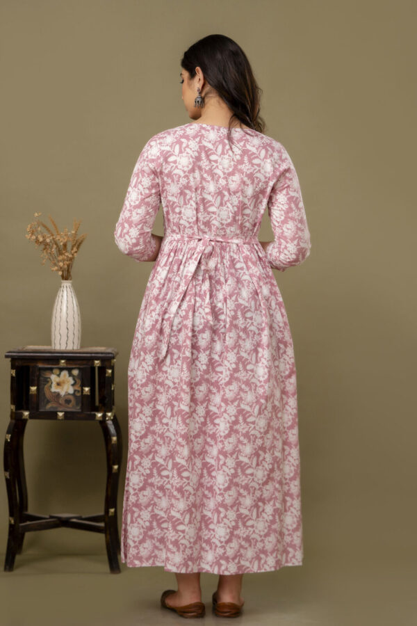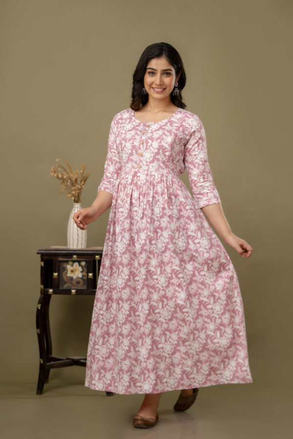 Be the first to review “Women’s Dusty Rose Floral Cotton Anarkali Dress”