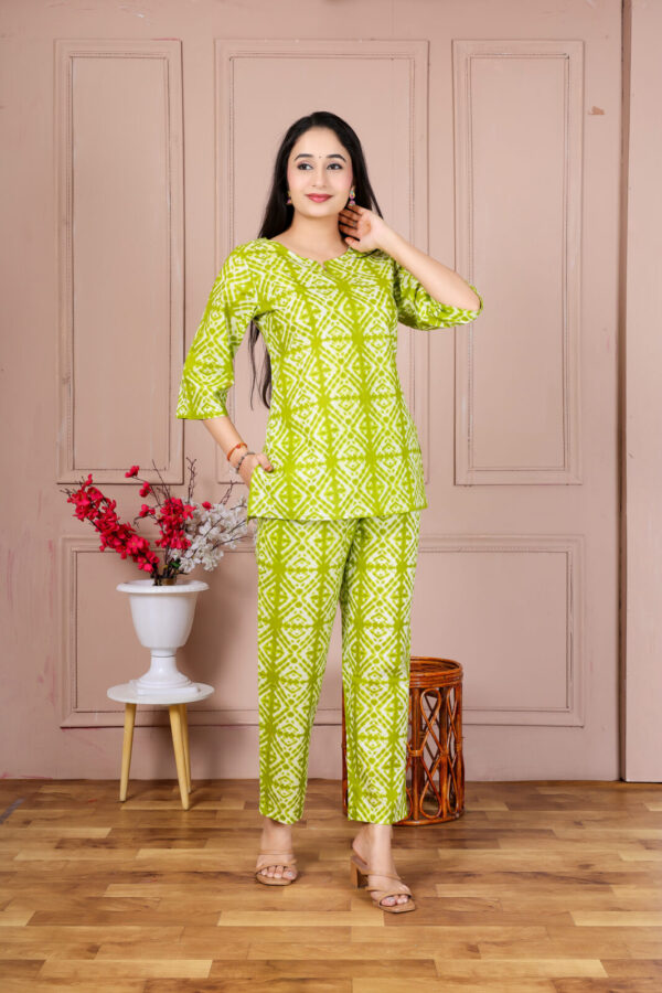 Women’s Lime Green Shibori Print Cotton Co-ord Set