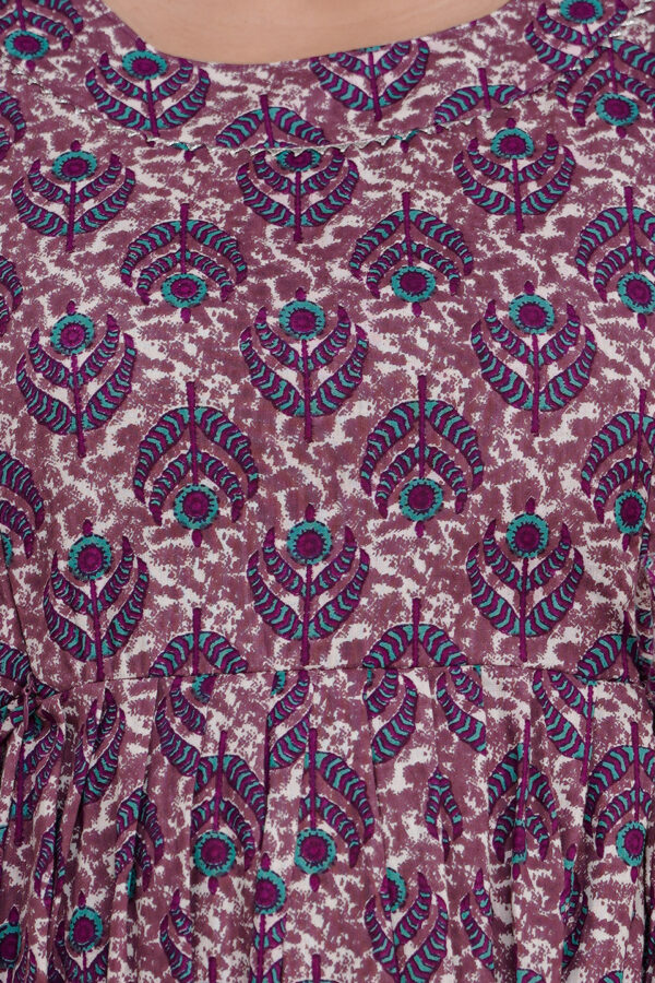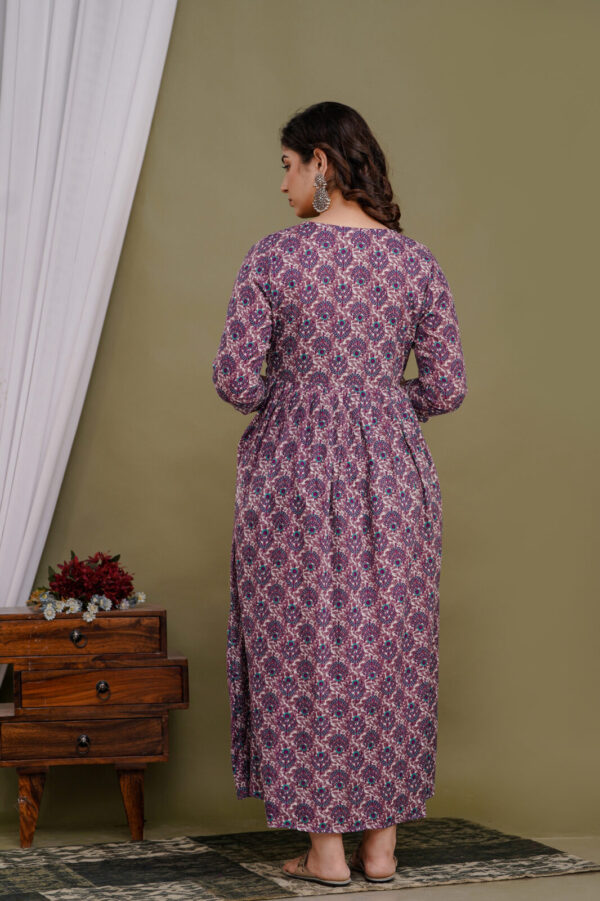 Refresh your ethnic collection with this elegant mauve purple Anarkali kurta. Adorned with a delicate, all-over floral buti print, this piece offers a sophisticated color palette and a graceful silhouette. Crafted from high-quality breathable cotton, it ensures you stay comfortable while looking effortlessly polished for brunch dates, office wear, or casual evening gatherings.