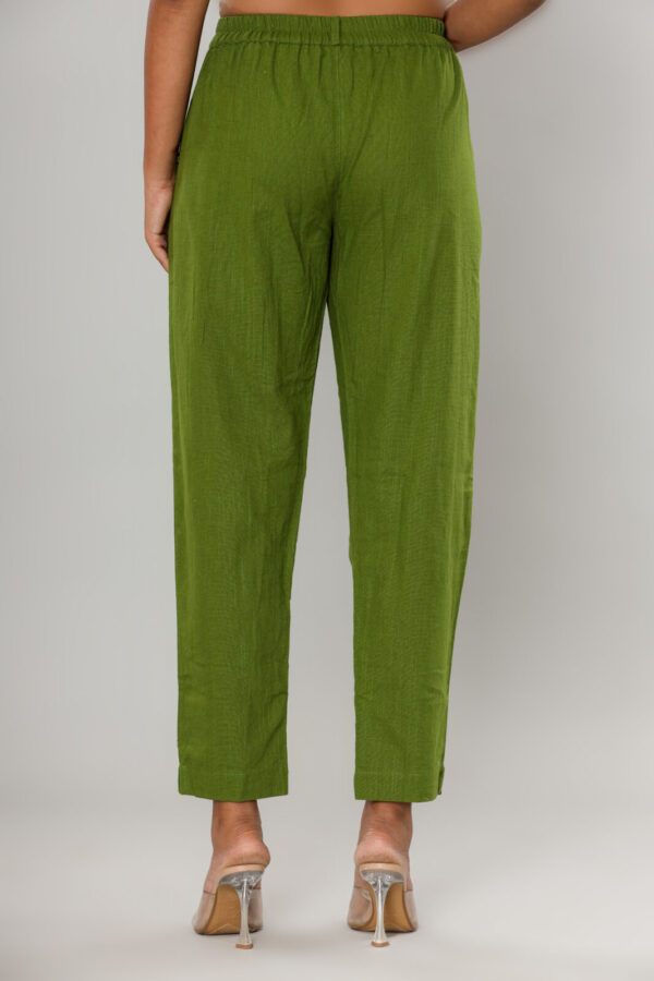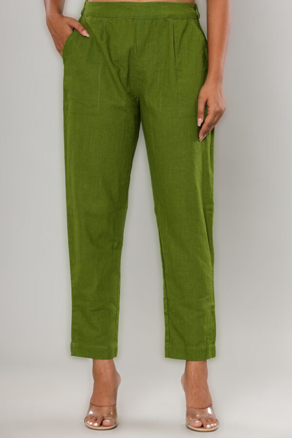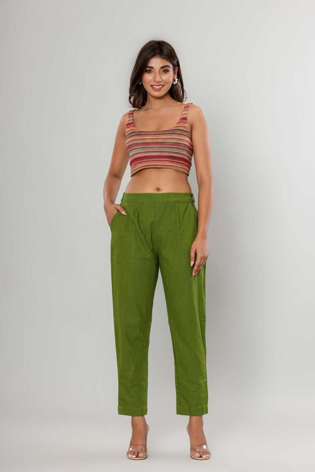 Women’s Olive Green Cotton-Linen Tapered Trousers