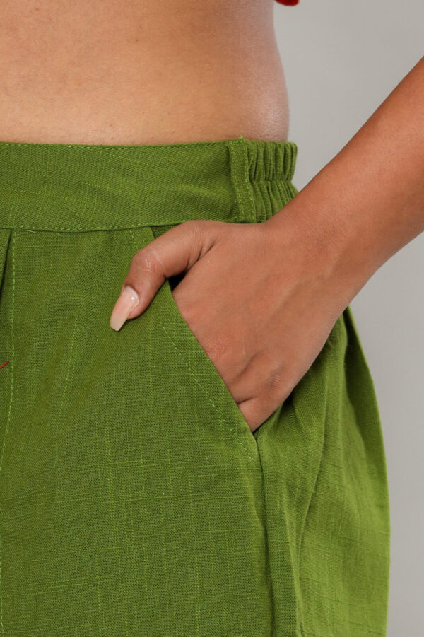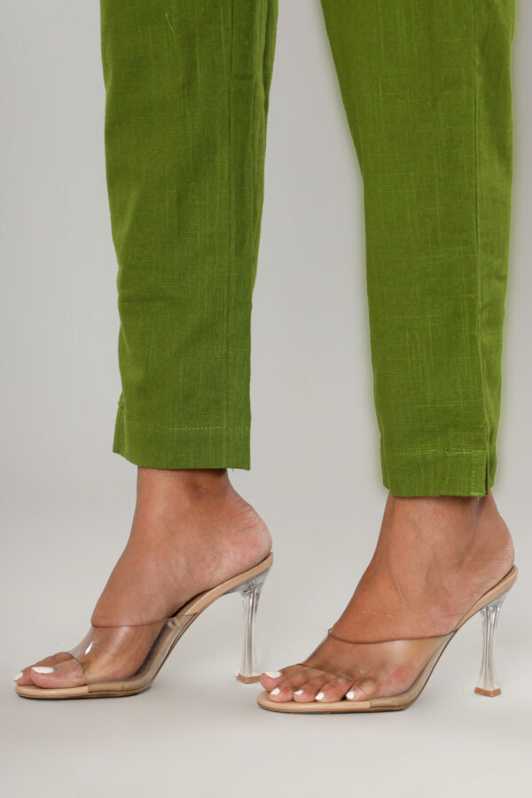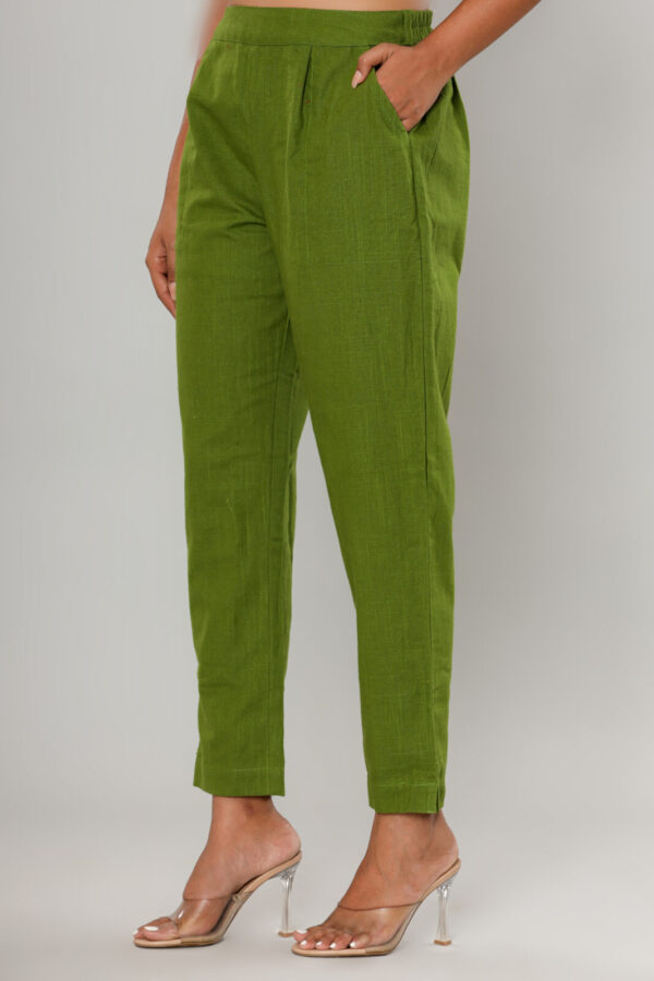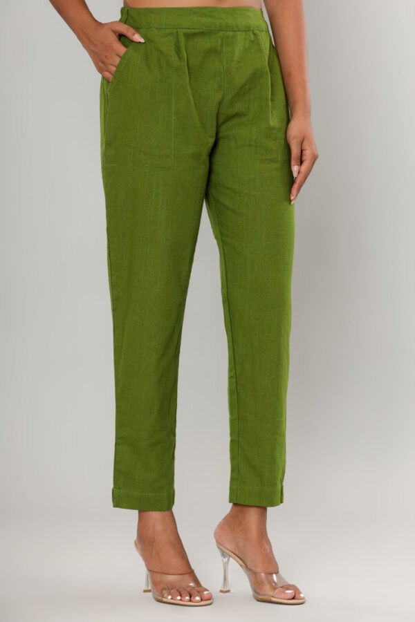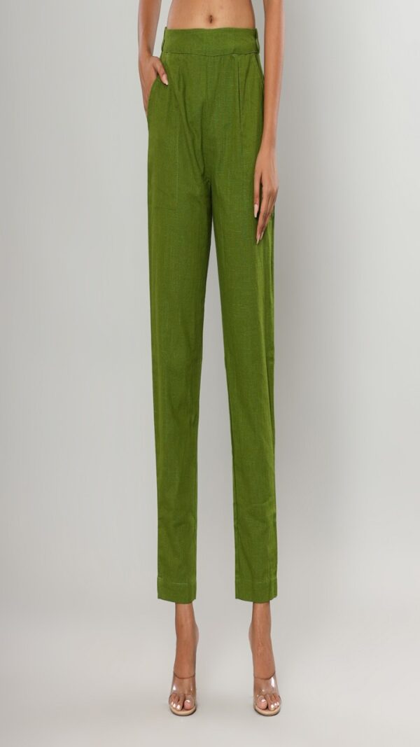 Bring a fresh, earthy tone to your seasonal wardrobe with these olive green trousers. Combining the natural breathability of linen with the soft structure of cotton, these pants are an ideal choice for a sophisticated, nature-inspired look that works for both work and play.