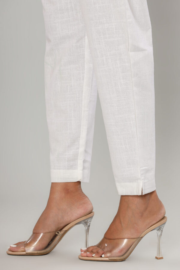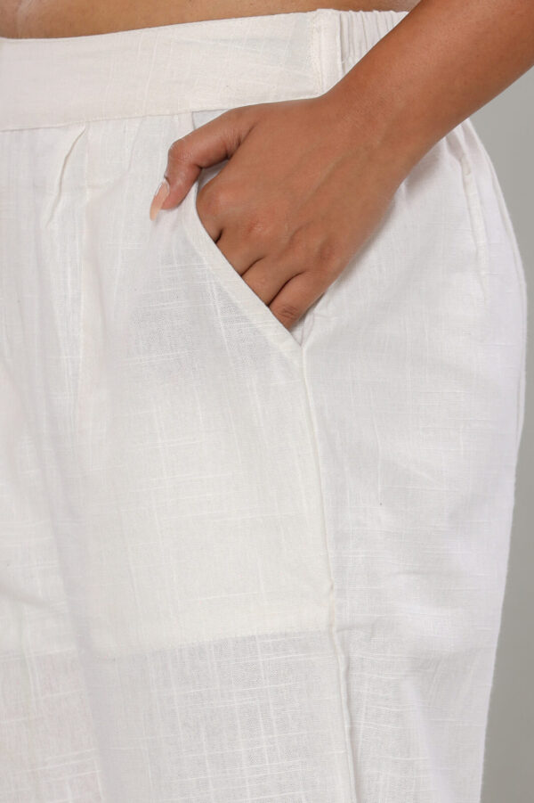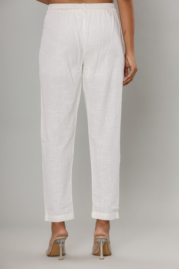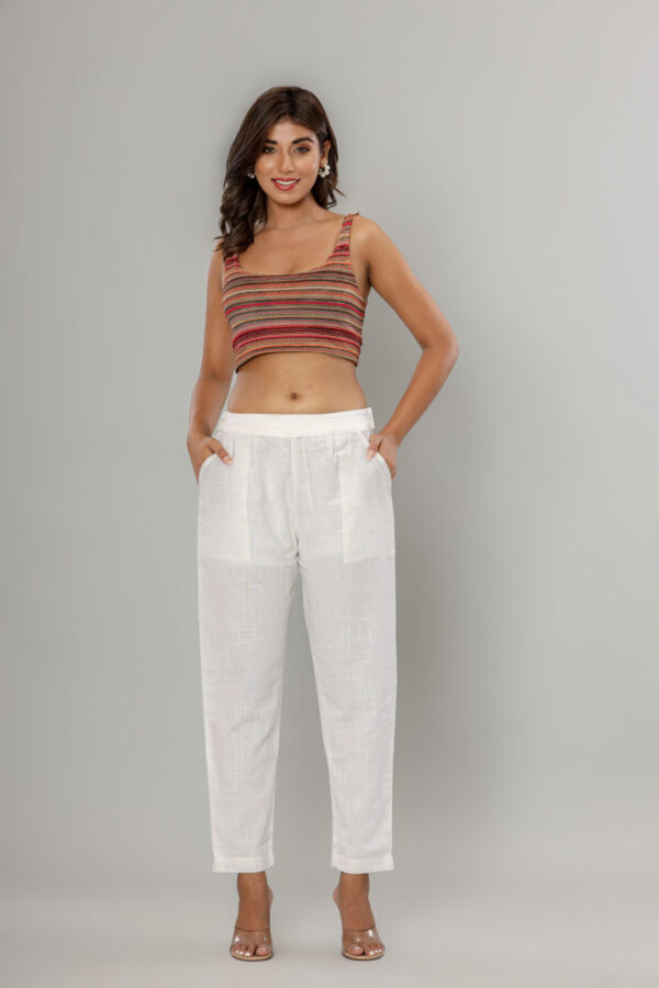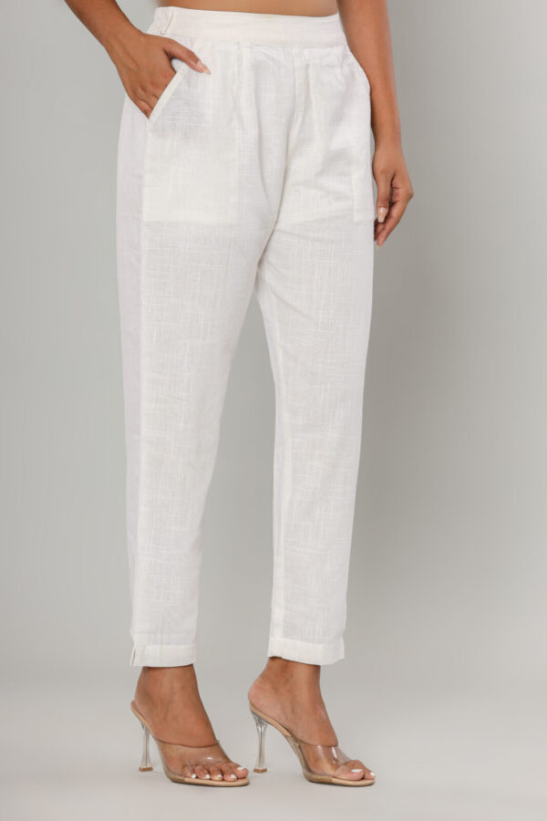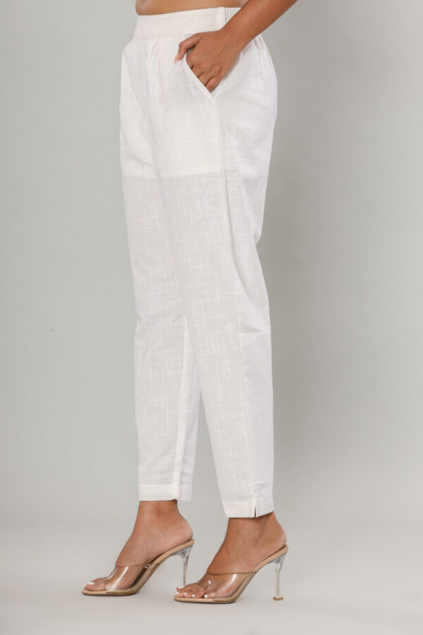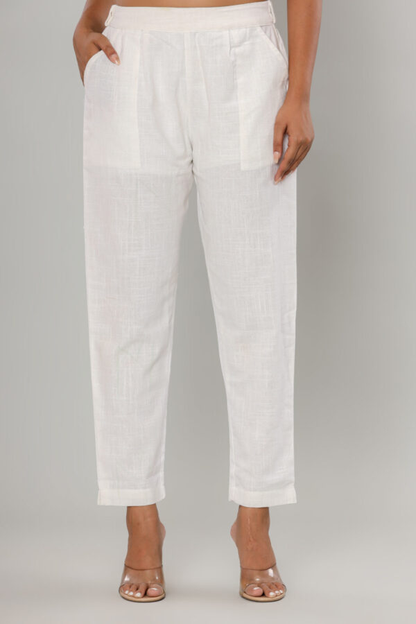 Women’s Pristine White Cotton-Linen Tapered Trousers