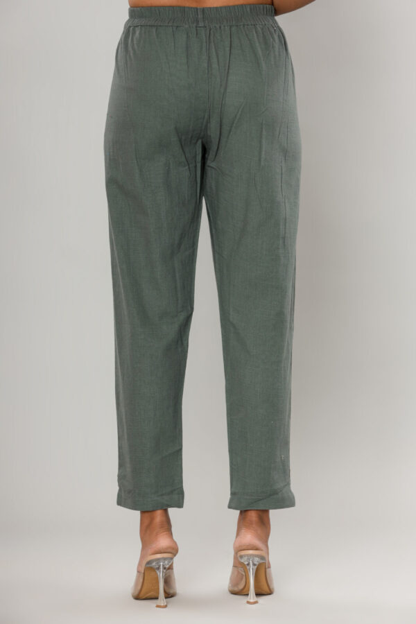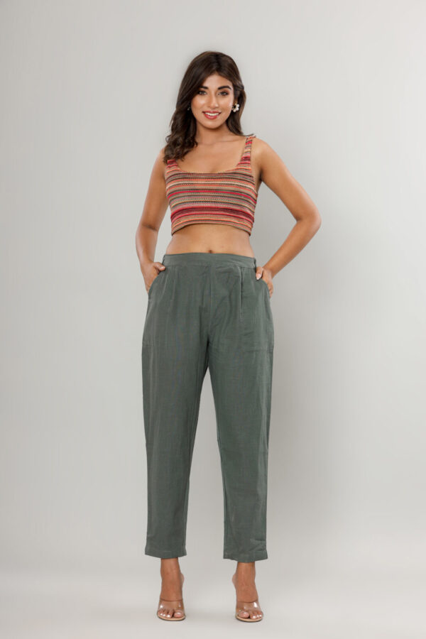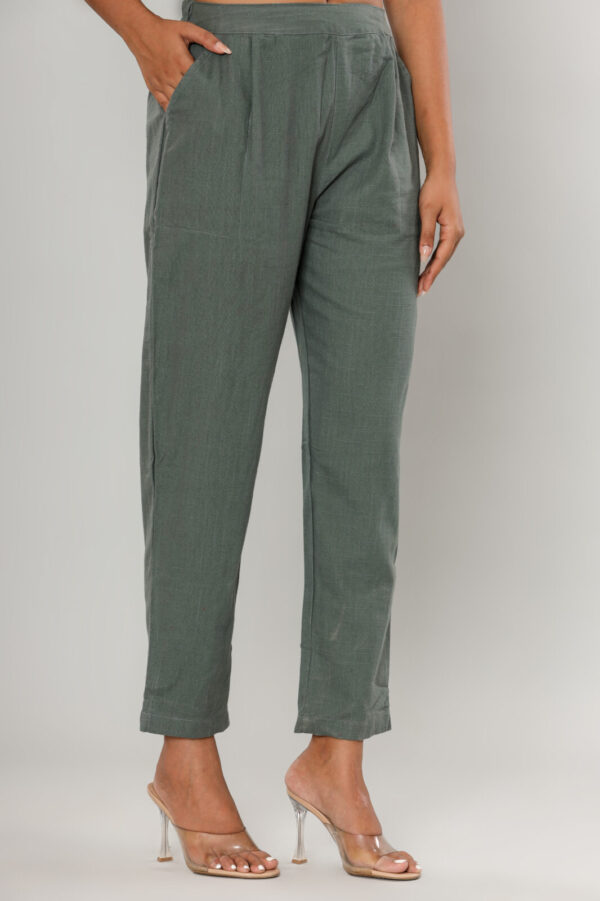 • Styling Tip: These versatile sage trousers pair beautifully with cream-colored knits for a soft look, or a crisp white button-down for a polished, office-ready ensemble.