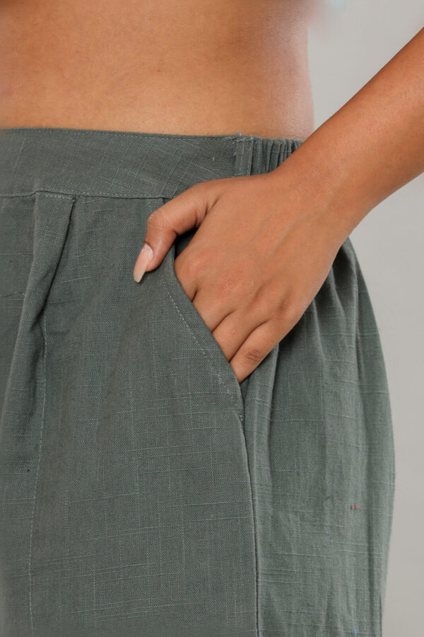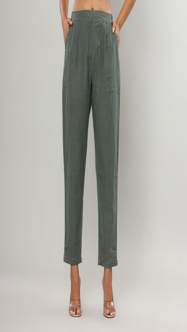 Be the first to review “Women’s Sage Green Cotton-Linen Pleated Trousers”