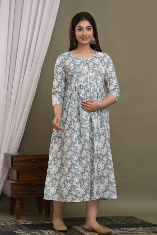 Refined Detailing: The front bodice is accented with a functional wooden-style button placket, adding a natural and earthy touch to the design.