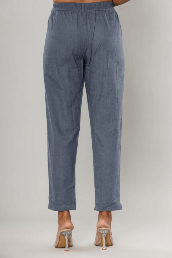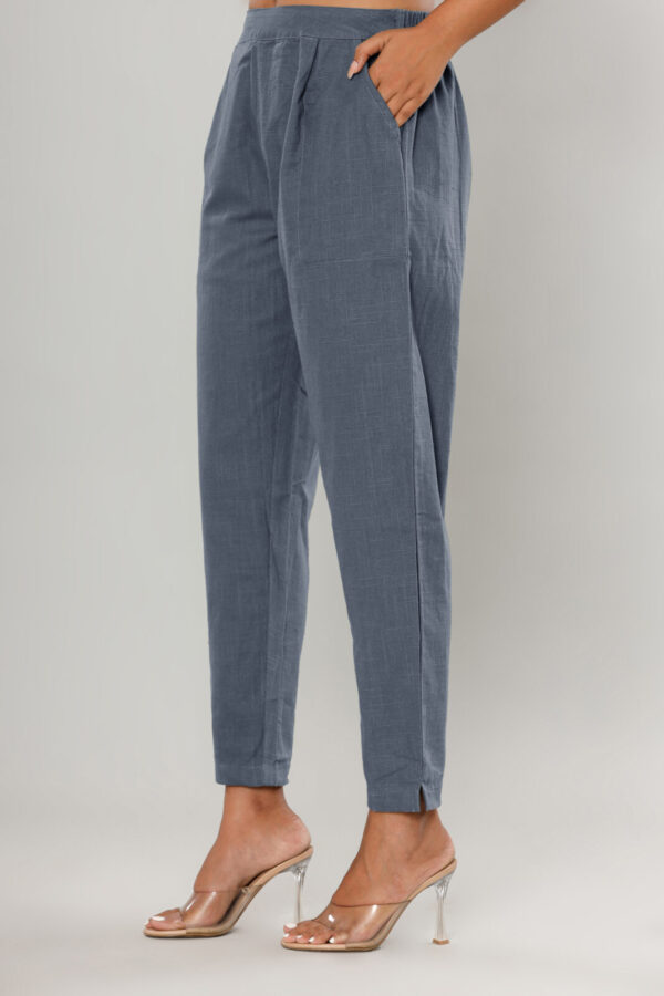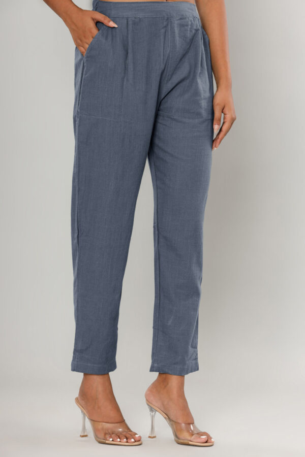 Discover the perfect blend of modern minimalism and everyday functionality with these slate grey trousers. Made from a high-quality cotton-linen fabric, these pants feature a subtle slub texture that adds depth and character to your outfit.