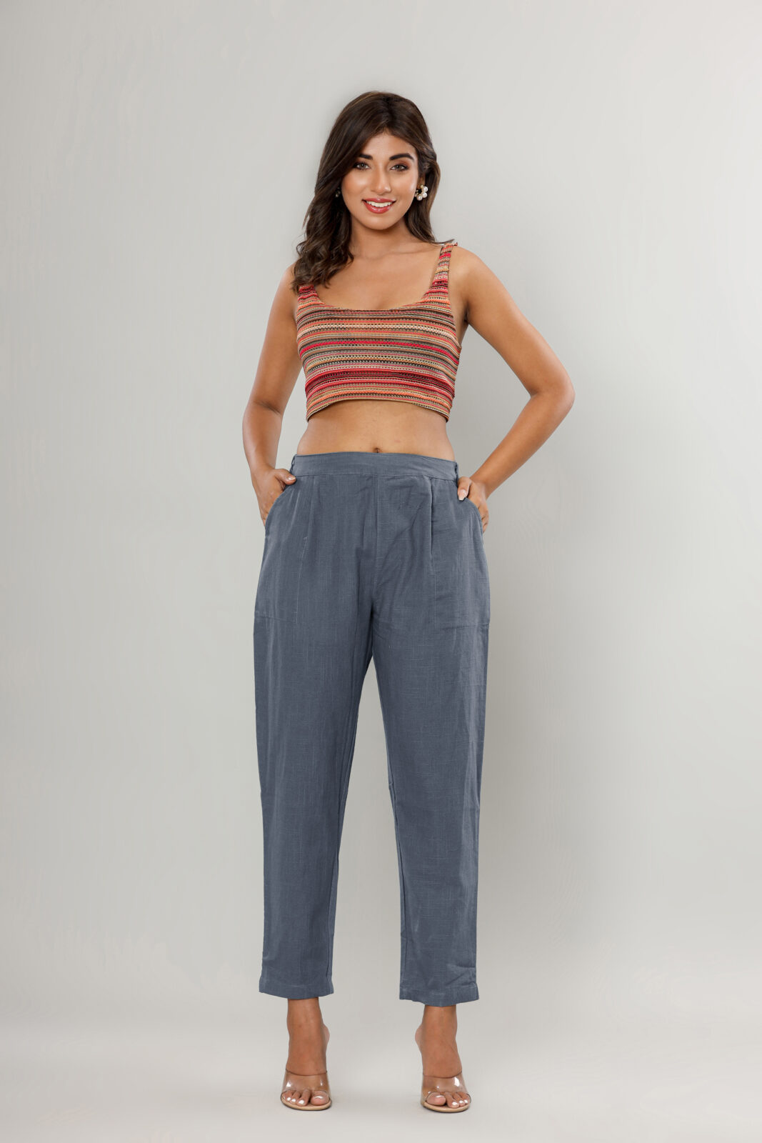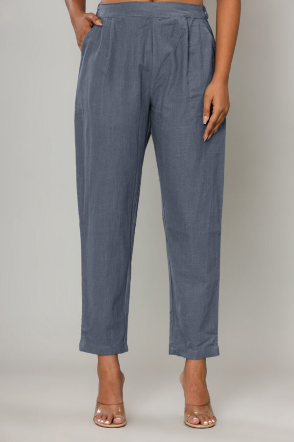 Women’s Slate Grey Cotton-Linen Pleated Trousers