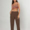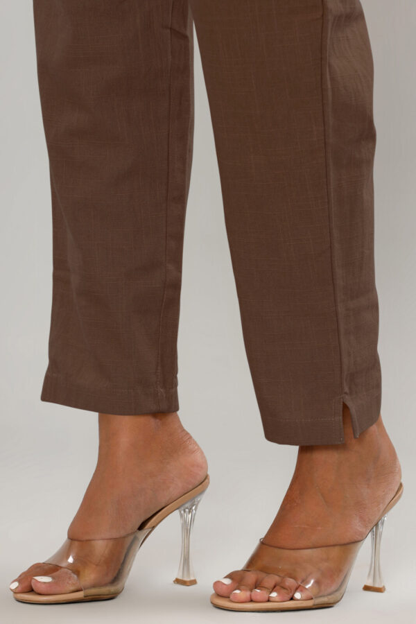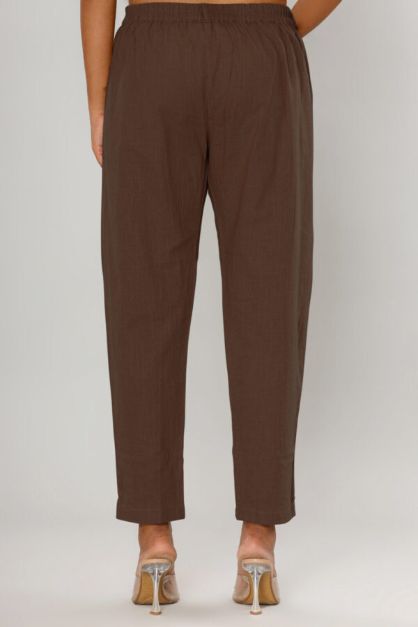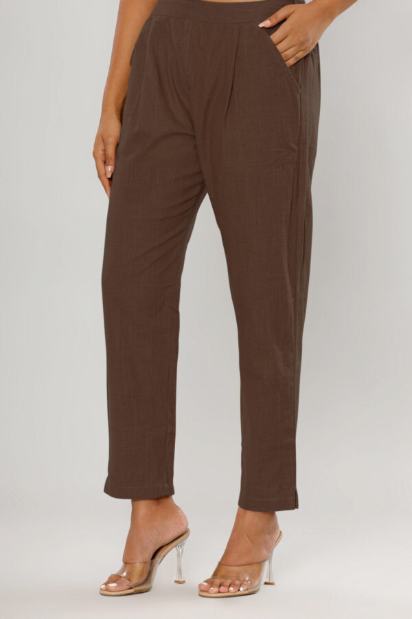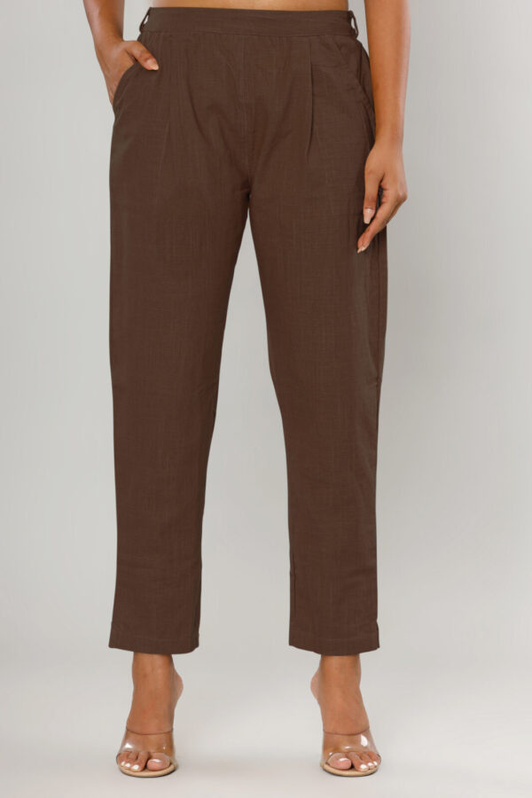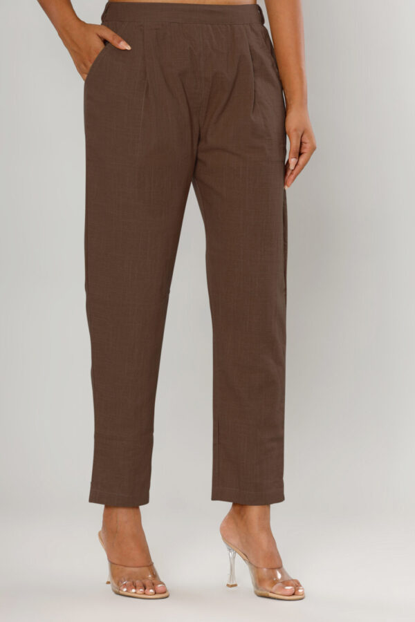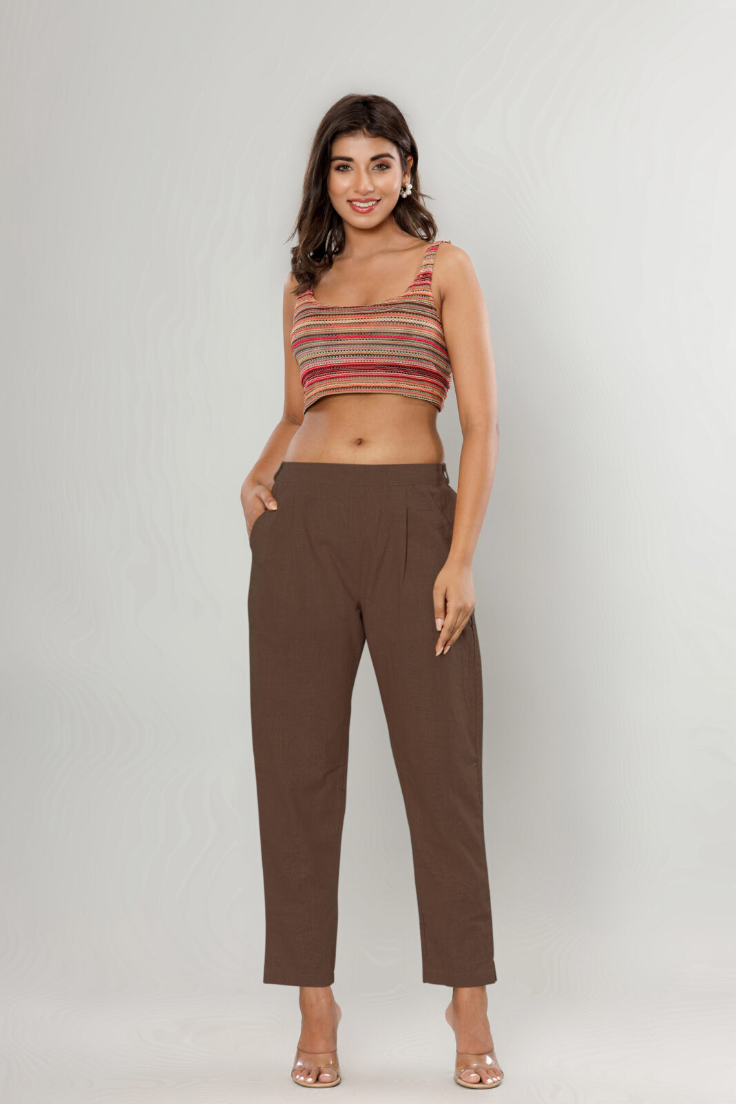 Women’s Solid Brown Cotton Straight Fit Trousers