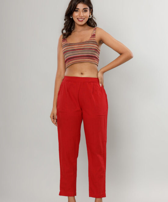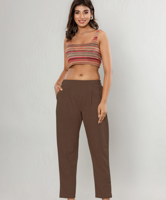 Waistband: A partial elasticated waistband ensures a snug, flexible fit without compromising the polished front-look.