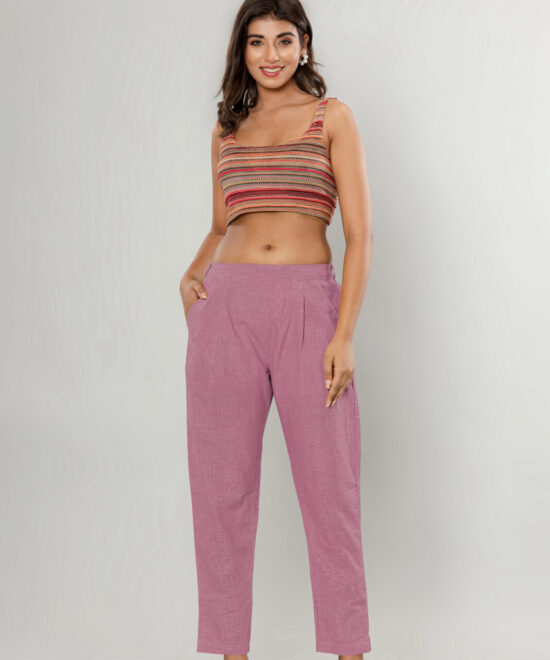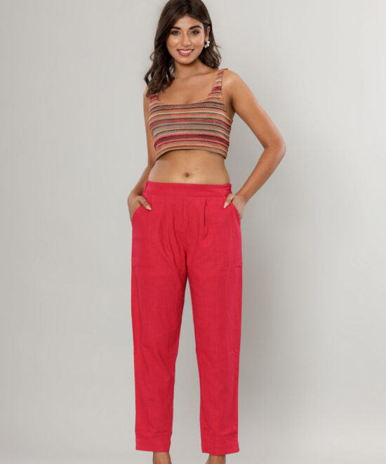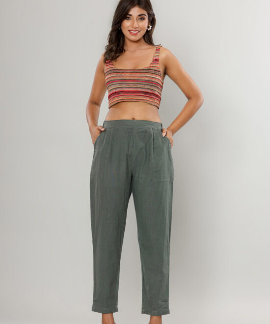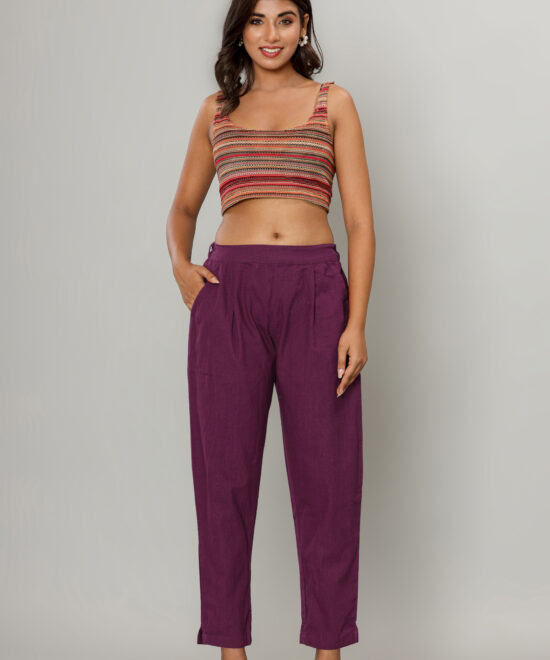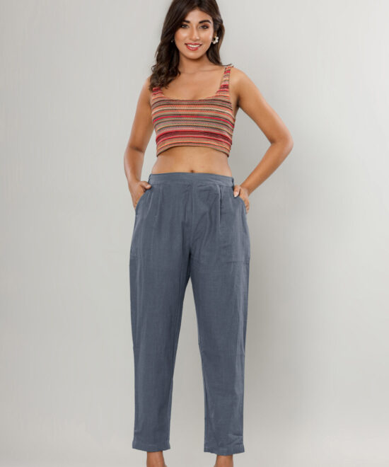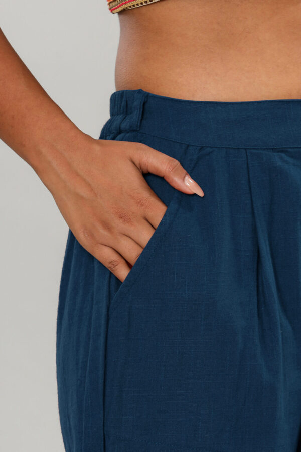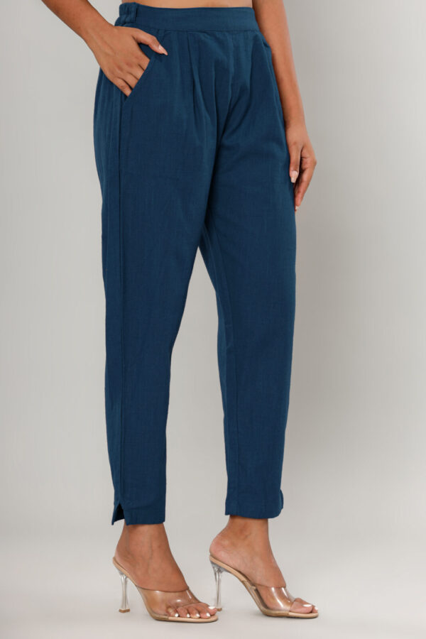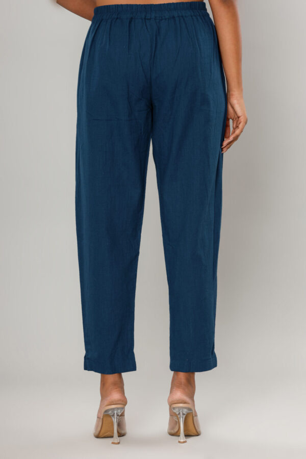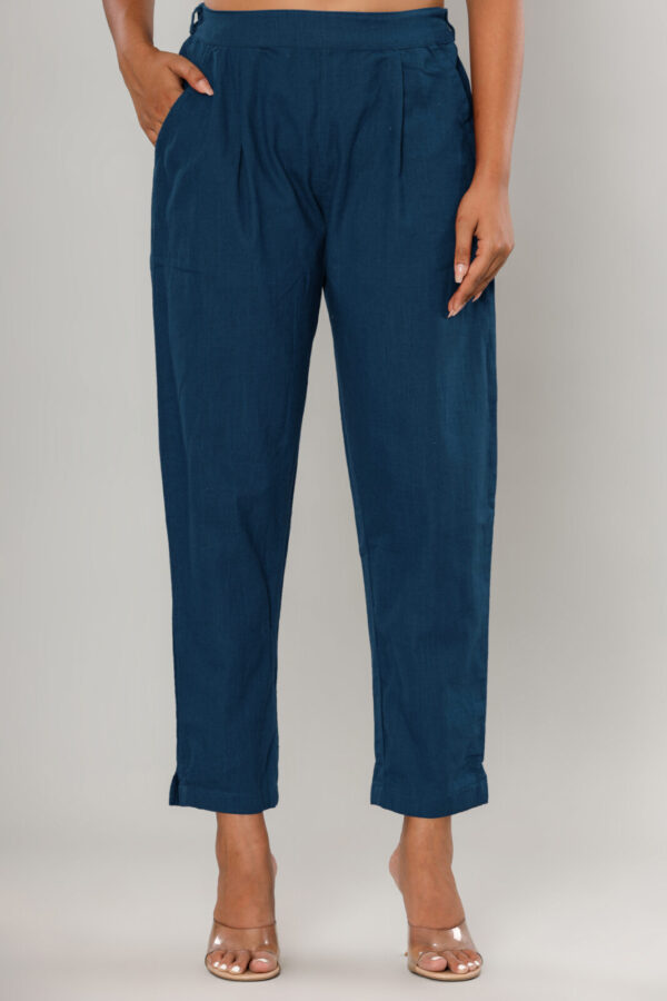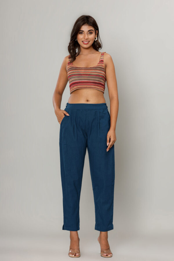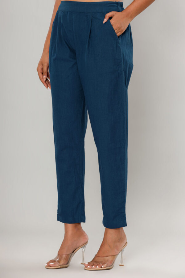 WWomen’s Deep Navy Blue Cotton-Linen Tapered Trousers
